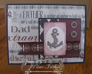 OMG...I LOVE LOVE LOVE your card, Pam! This is an absolutely fantastic Father's Day card! Your patterned paper, that anchor, and those fab grommets are spectacular! Into my CASE file :O)